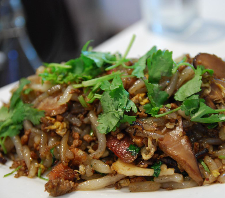 - Pan for stir frying beef and deep pan for preparing rice noodles.
