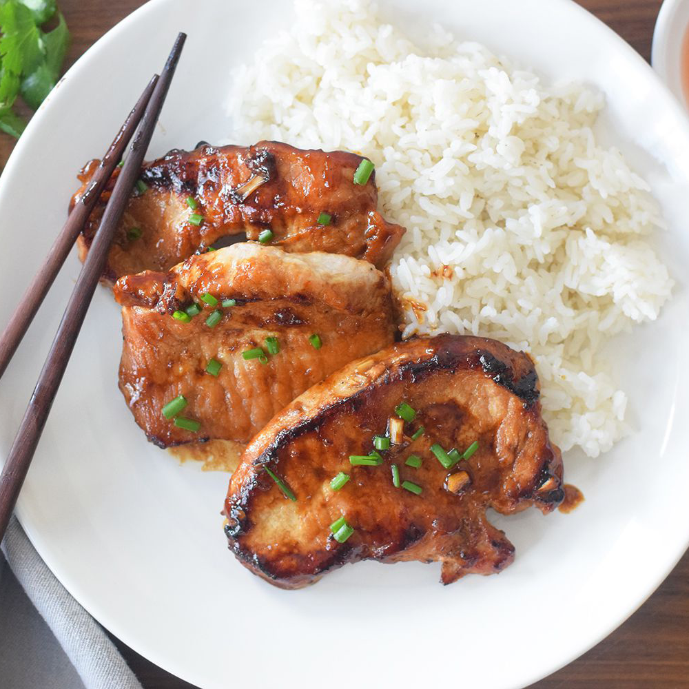A hearty, satisfying meal of juicy, tender chops served with rice and all the trimmings. We can also substitute the pork with rice or chicken if preferred.